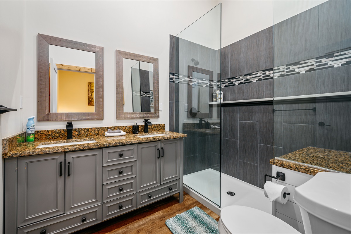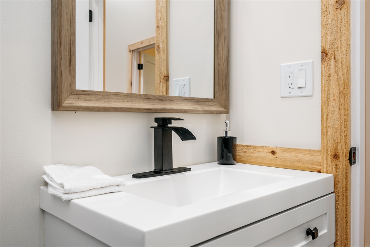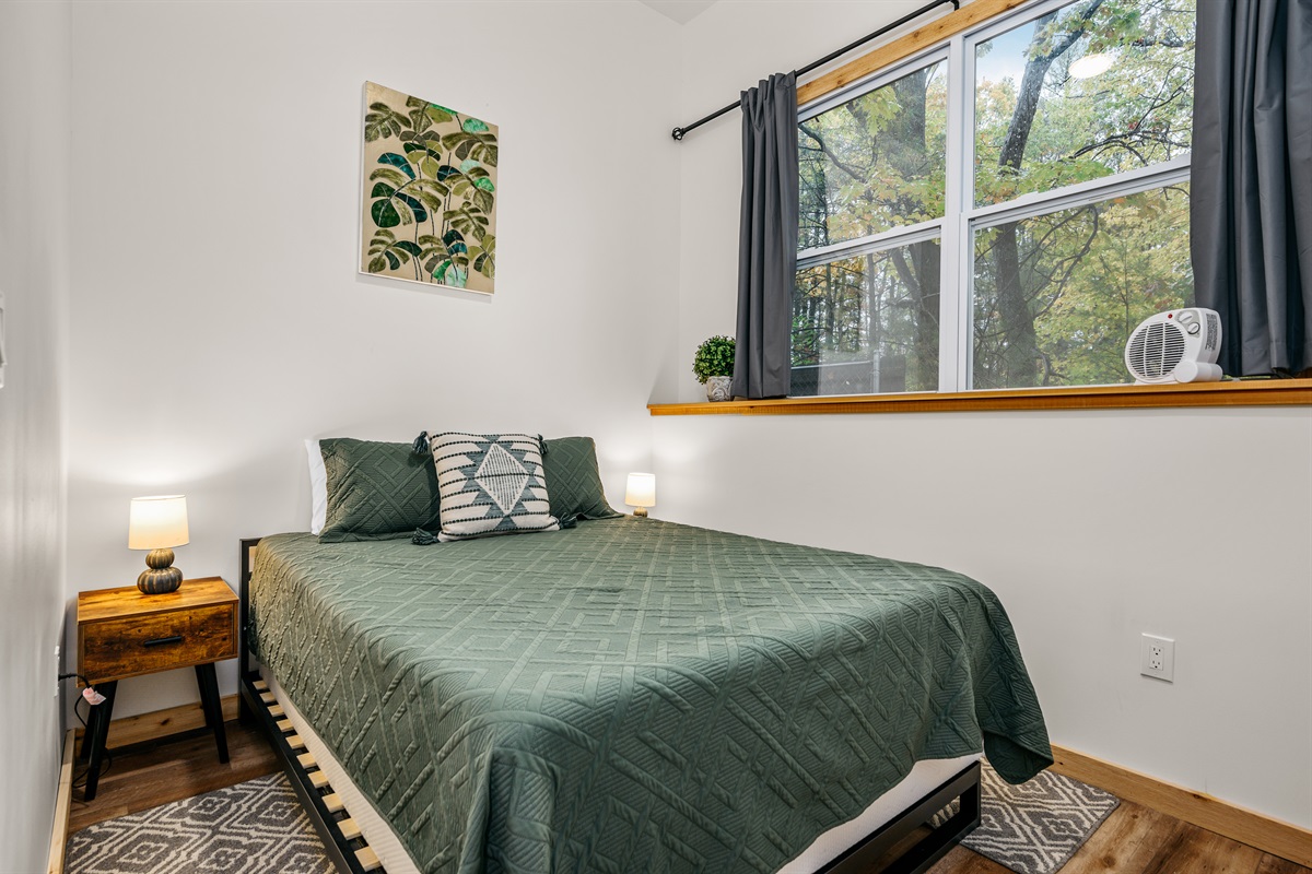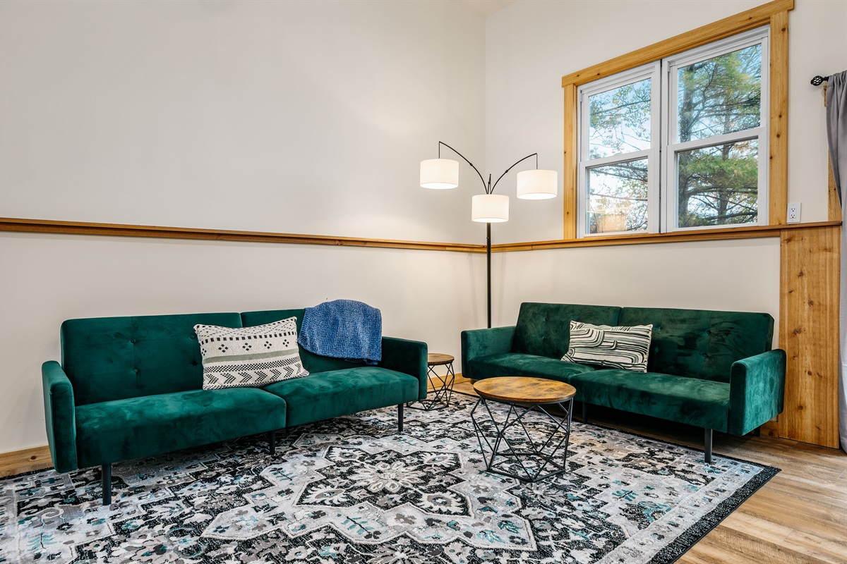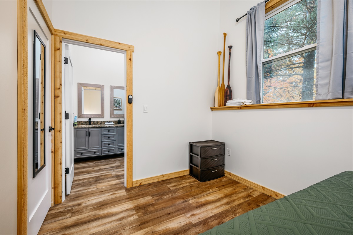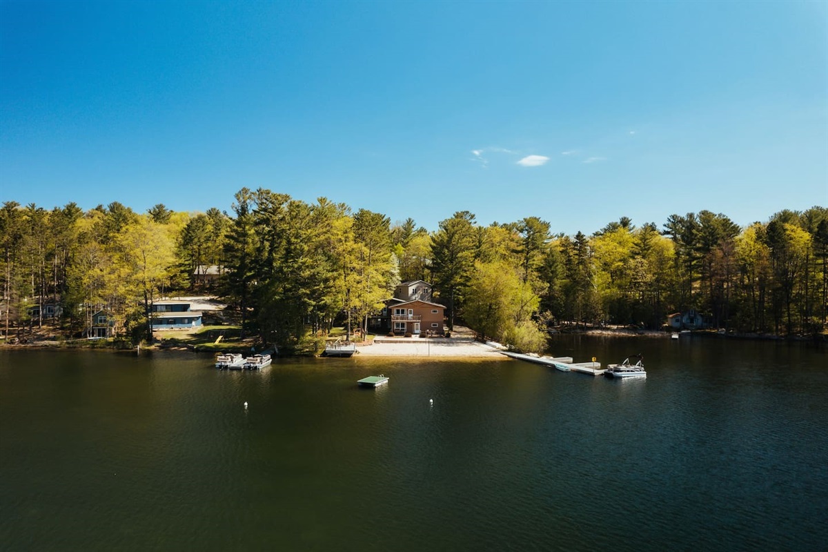 This modern rustic escape has a style all its own. An antique canoe hangs from the 12ft ceiling providing the lighting for memorable nights with friends and family. Days are spent on beautiful Spider Lake. Make sure to inquire about our brand new pontoons! This space has 2 bedrooms w/queen beds and additionally 2 futons in the living room. Each of the 2 baths have massive tiled showers. This is part of a lakeside resort where other guests will share the beach and exterior amenities.