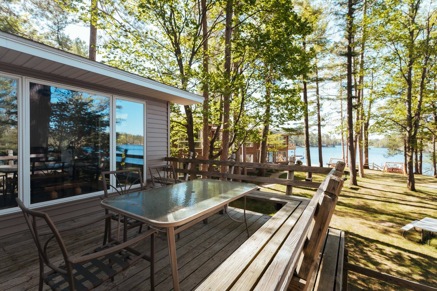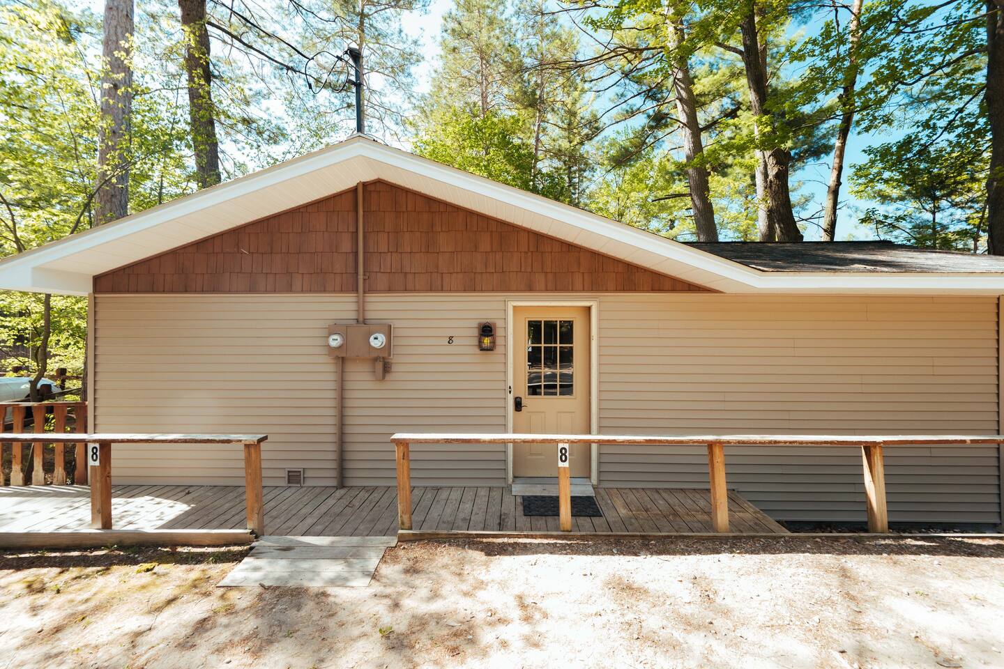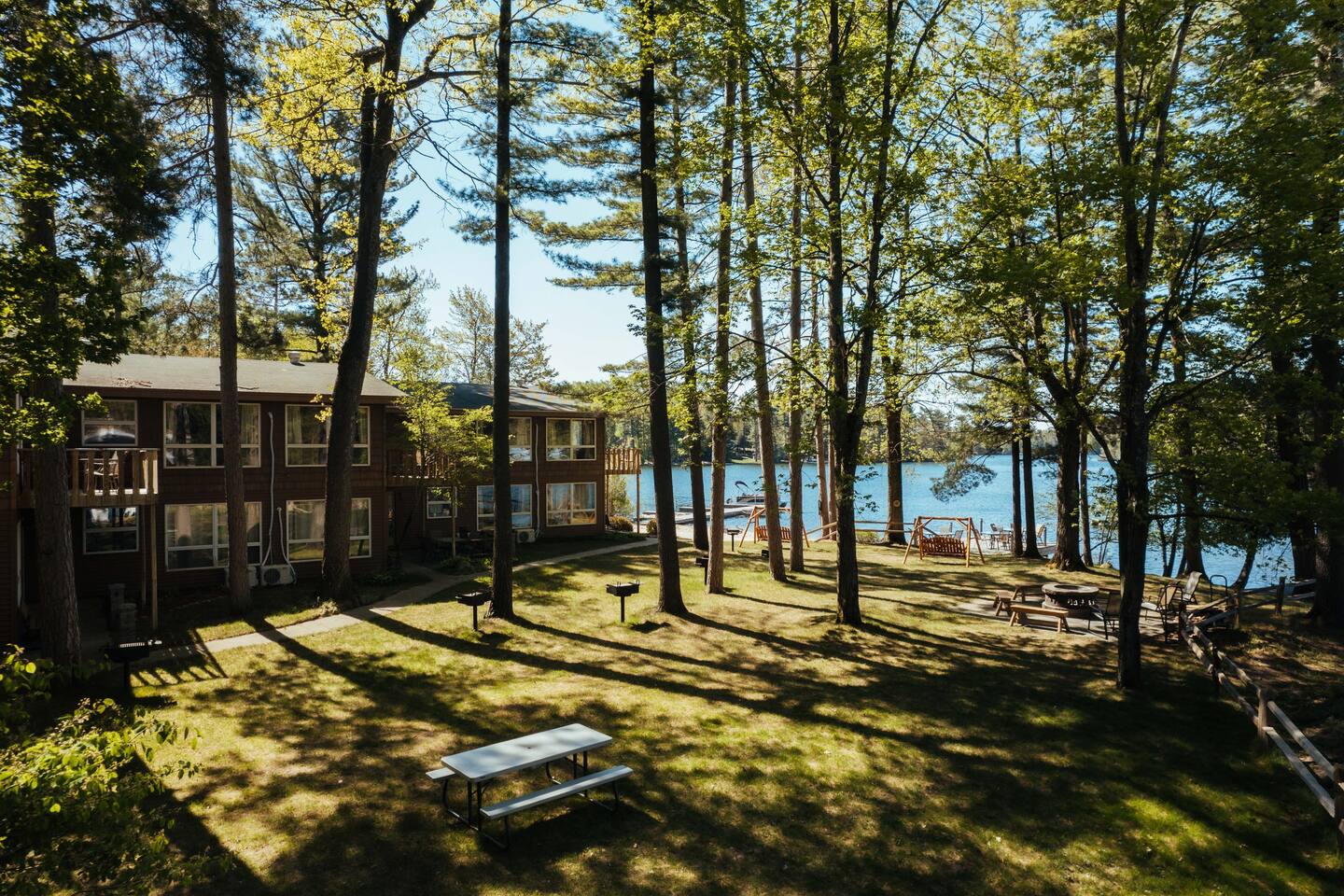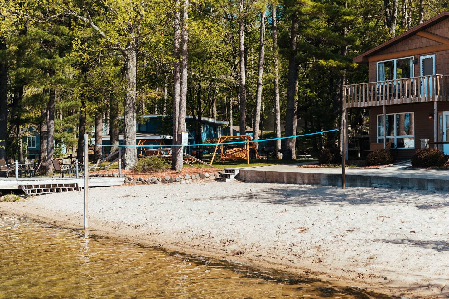 Nestled on the shores of all-sports Spider Lake and only 10 miles to downtown Traverse City and Flint Fields, this quiet resort will provide the rest and relaxation needed during your Northern Michigan getaway. Each unit boasts panoramic views from the main living spaces and two bedrooms that accommodate up to eight guests. Walk right out the door onto 259 feet of private, sandy beach. Each unit is being modernized prior to the Summer 2022 season. Also ask about our 2022 pontoons for rent!