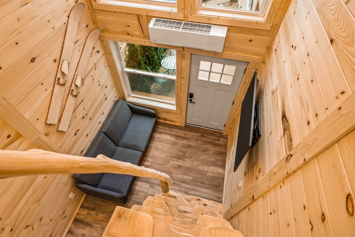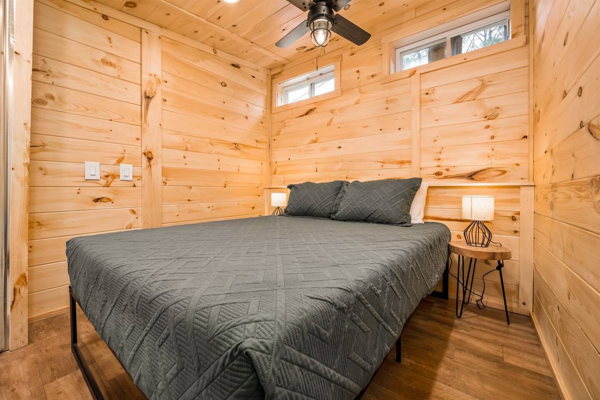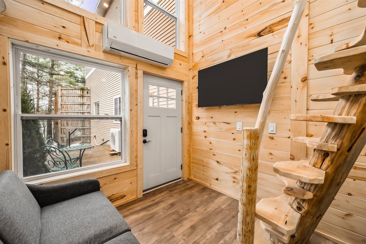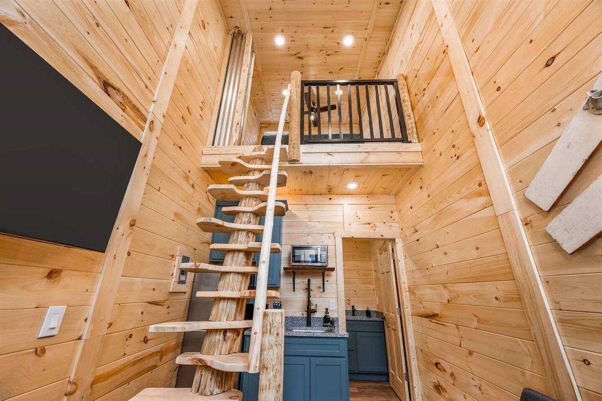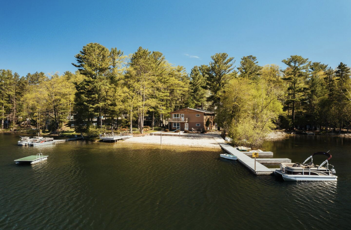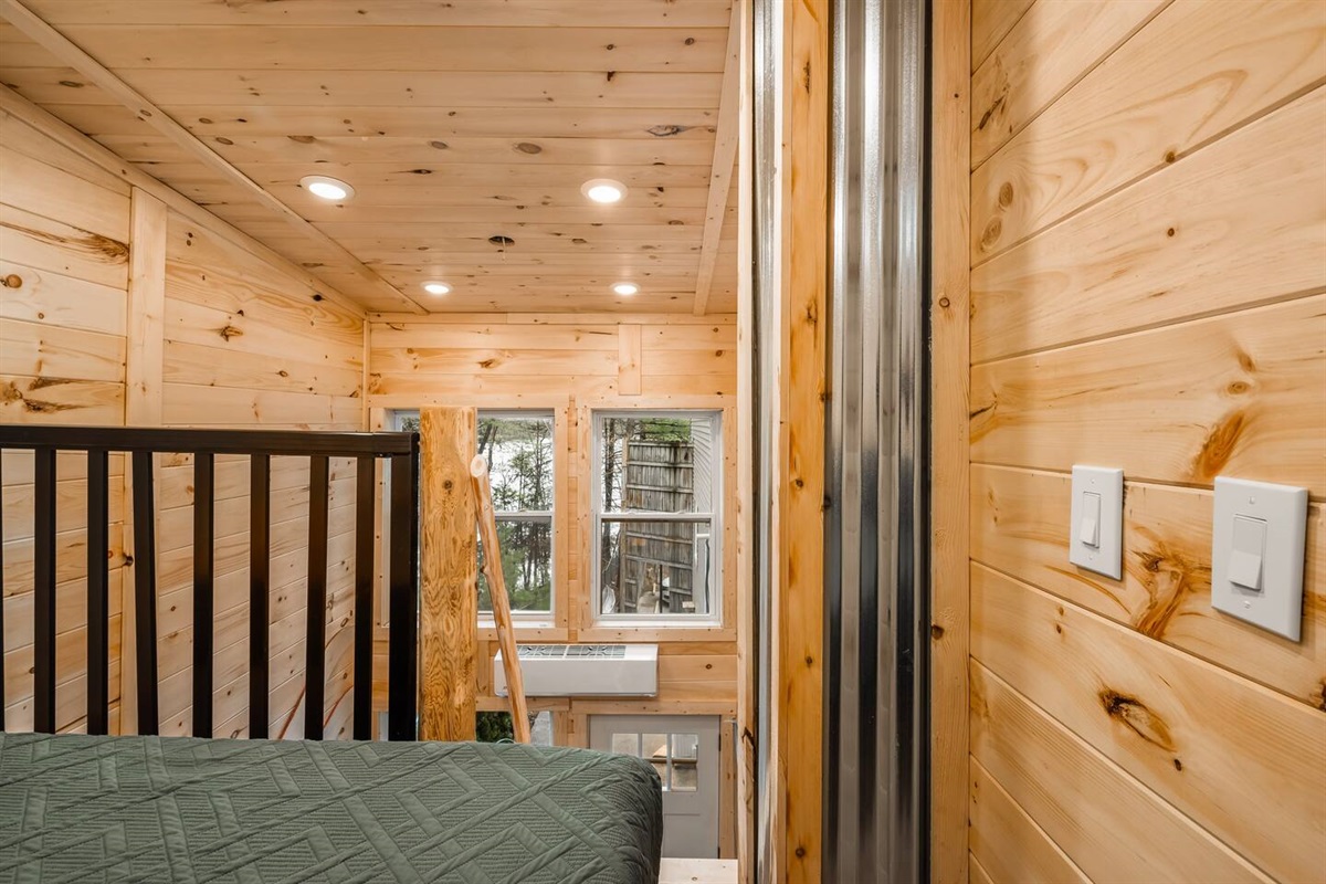 This tiny loft on Spider Lake is anything but ordinary. The steep stairs, handcrafted by the owner, are only for the most adventurous souls. There is no Wi-Fi access within the unit, but you'll find better signal as you wander to the shared yard and beach. There you'll find 200' of sand, charcoal grills, and pontoons & paddle boards available for rent! The loft features a new queen bed, full kitchen (minus an oven), and a beautifully tiled shower. Put your phone down for the weekend and enjoy!